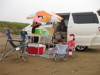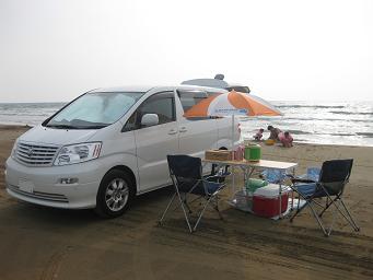 こんな感じ、車のすぐ後ろが砂浜です